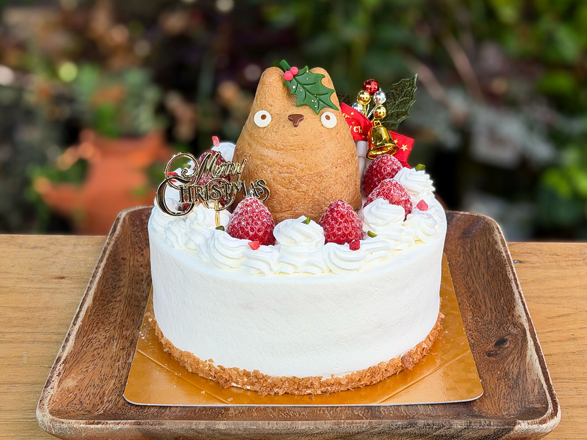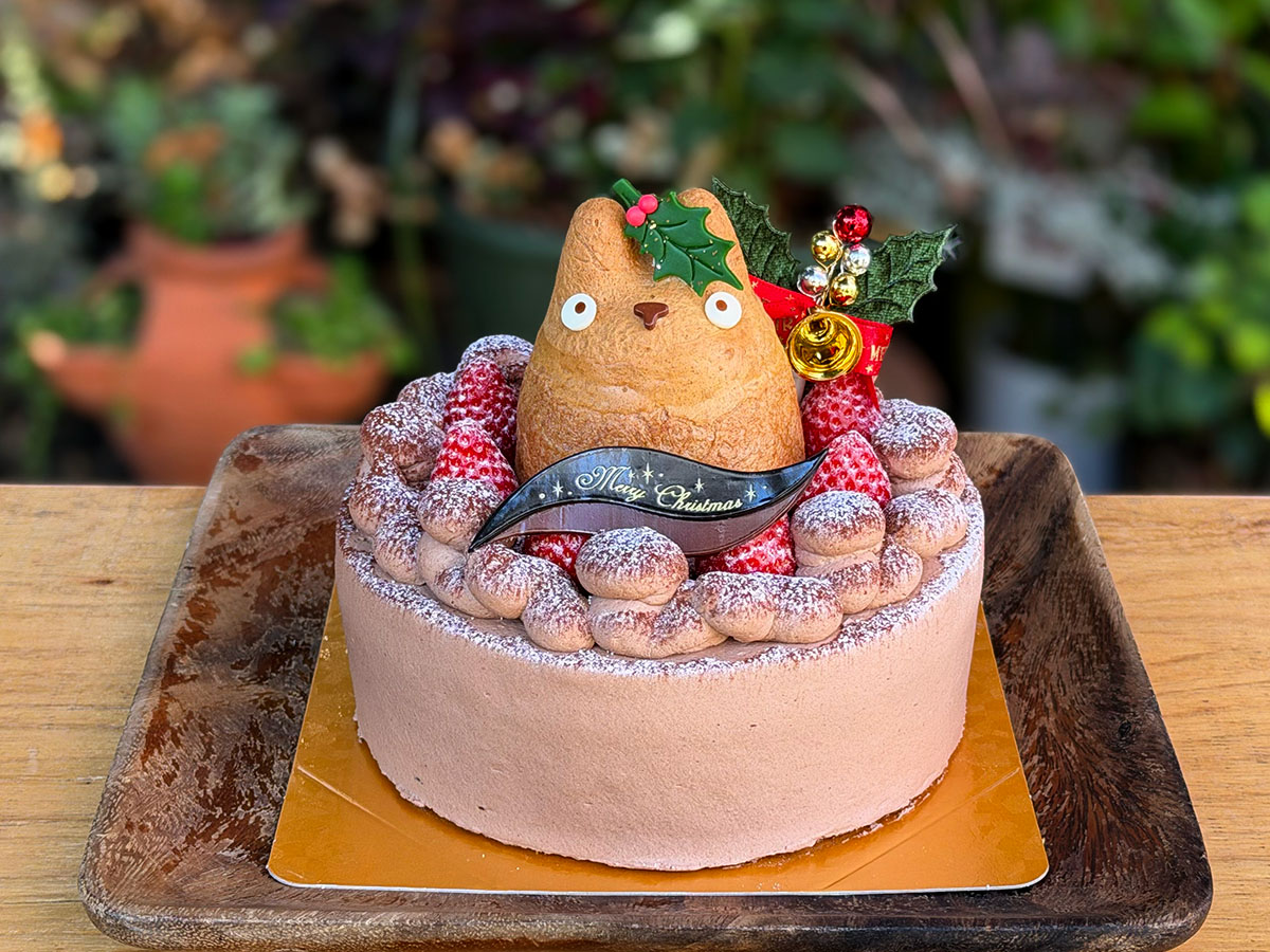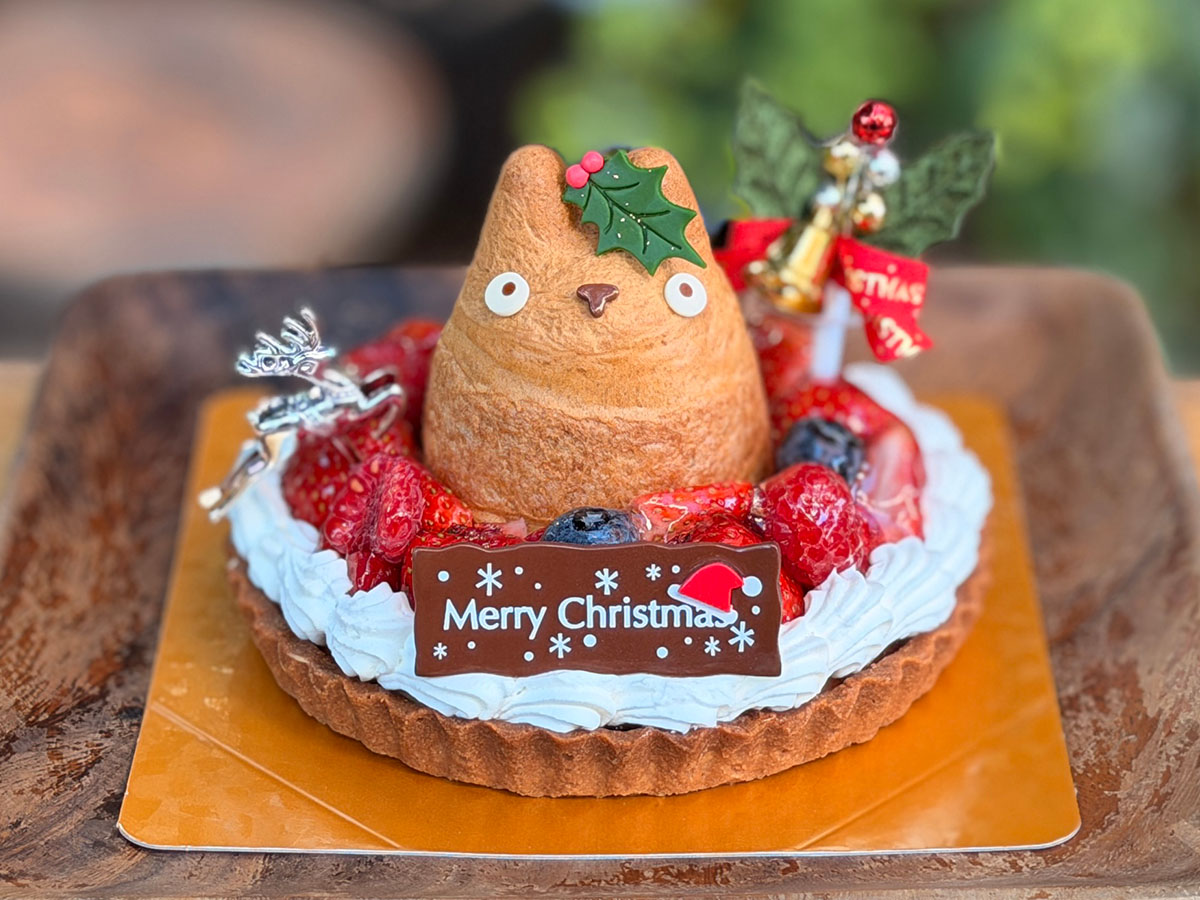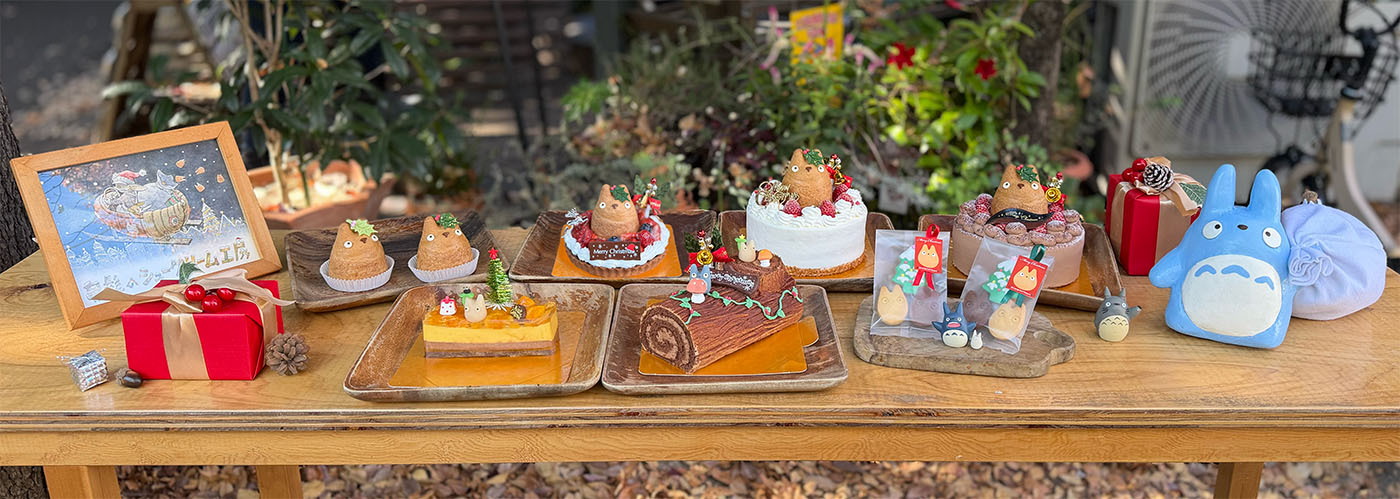 森の切り株で楽しそうに過ごすトトロの情景をかわいらしいケーキとして表現したブッシュドノエルです。