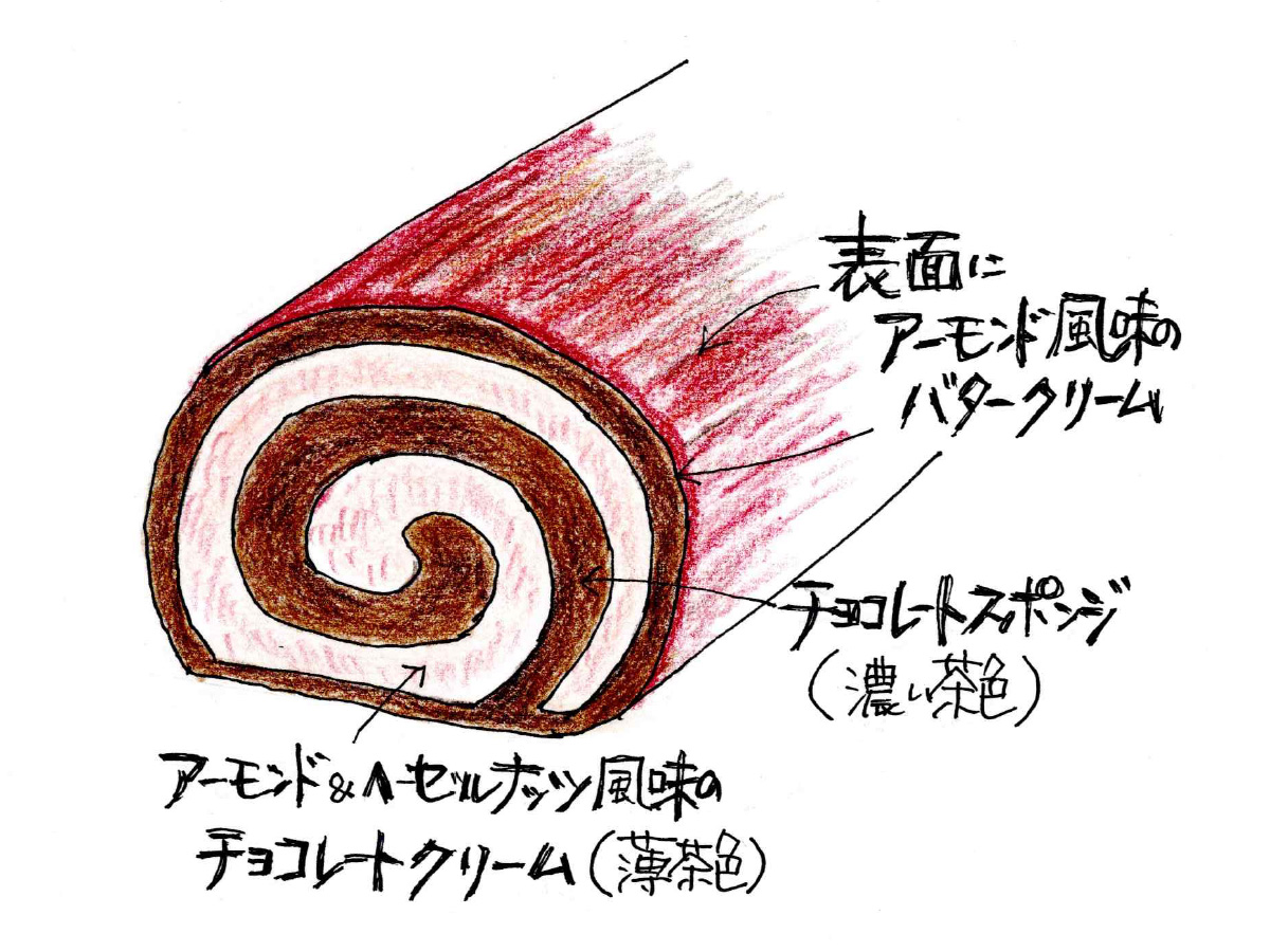 アーモンド、ヘーゼルナッツの香ばしさを加えたチョコレートクリームを、ふんわりチョコレートスポンジで巻き込みました。