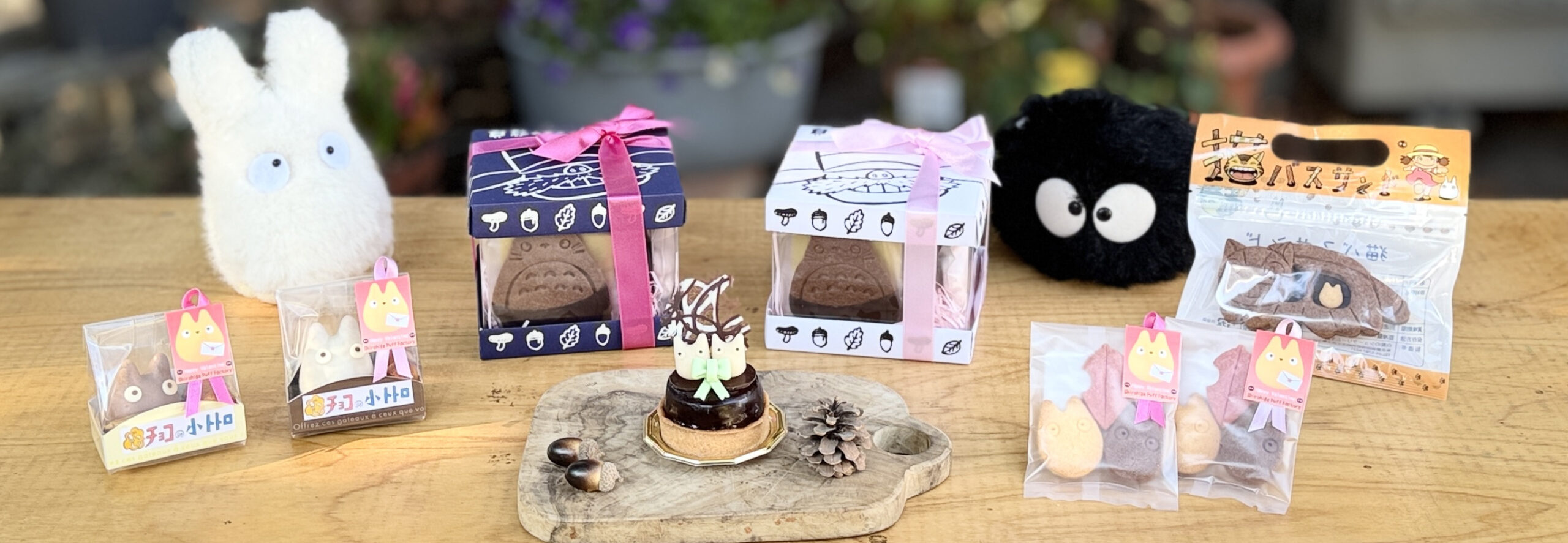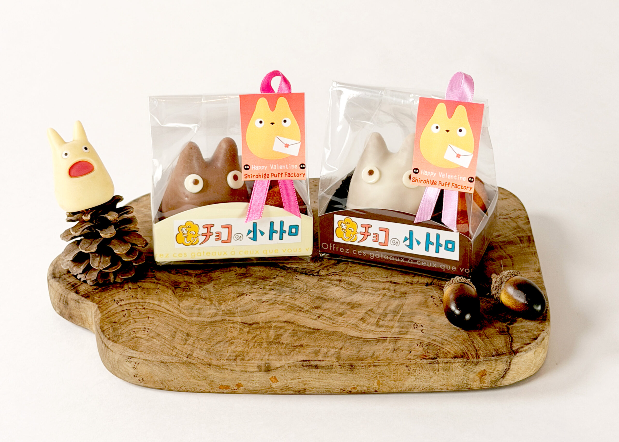 なかよしな小トトロを結ぶように添えたチョコレートリボンが、バレンタインの贈りものにぴったりな仕上がりです。
